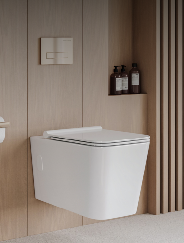 Wall-hung toilets offer a floating design that saves space and makes cleaning...