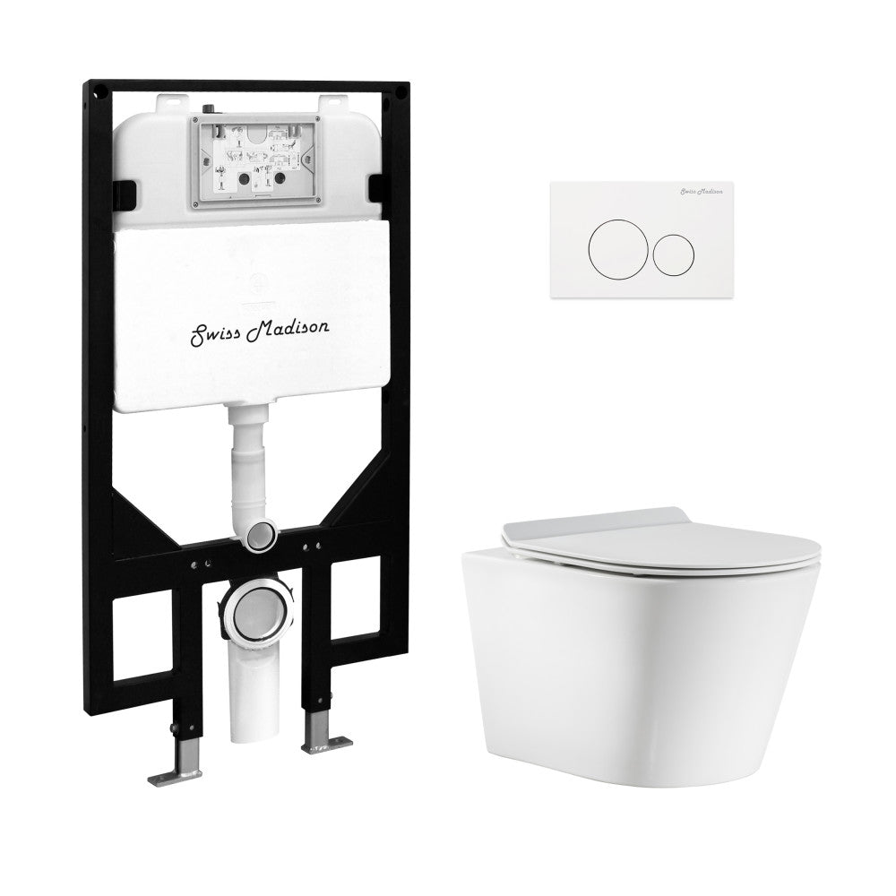 Calice Wall-Hung Toilet Bundle 0.8/1.6 GPF Dual Flush in Glossy White with White Flush Plate