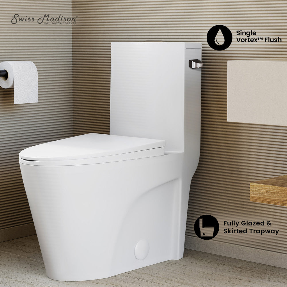 St. Tropez One-Piece 14" Rough-in 1.28 GPF Right-Hand Vortex Flush Elongated Toilet in Glossy White