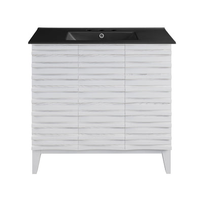 Cascade 36 in. White Oak Bathroom Vanity With Black, 3-Hole Ceramic Sink Top