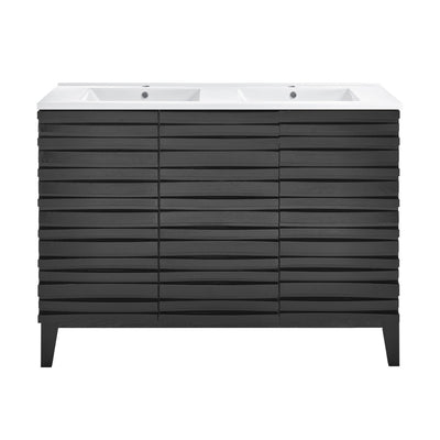 Cascade 48 in. Black Oak, Double Basin Bathroom Vanity With White Ceramic Sink Top