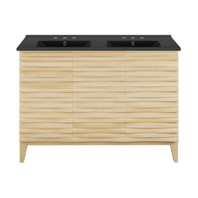 Cascade 48 in. Natural Oak, Double Basin Bathroom Vanity With Black Ceramic Sink Top