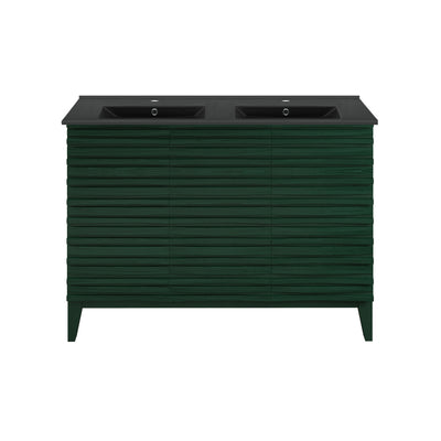 Cascade 48" Freestanding Bathroom Vanity in Green Oak with Black 3-Hole Widespread Double Basin Sink Top