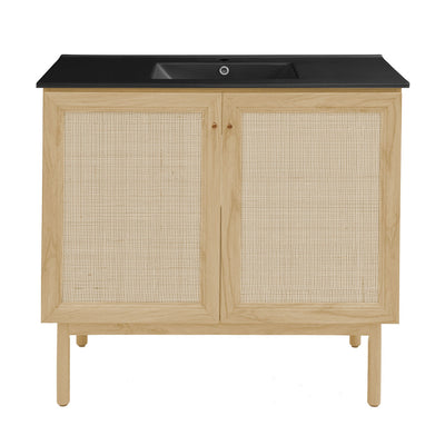 Classe 36" Freestanding Bathroom Vanity in Natural Oak with Black Sink Top