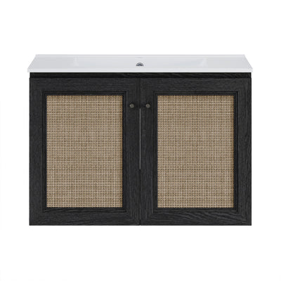 Classe 30" Wall-Mounted Bathroom Vanity in Black Oak with Single Faucet Hole Vanity Top