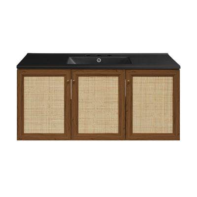 Classe 48" Wall-Mounted Bathroom Vanity in Brown Oak with Black Sink Top