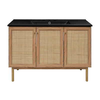 Classe 48" Freestanding Bathroom Vanity in Golden Oak with Black Sink Top