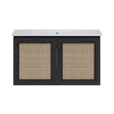 Classe 48" Wall-Mounted Bathroom Vanity in Black Oak