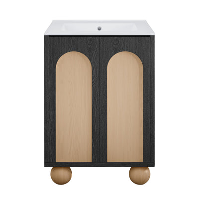 Plaisir II 24" Freestanding Bathroom Vanity in Black Oak with Black Sink Top