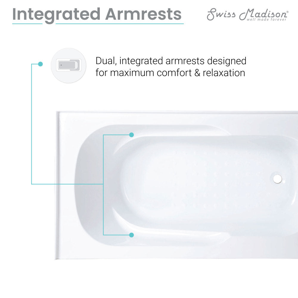 - Integrated armrest: Bathtubs featuring integrated armrests offer comfortable support, enhanced stability, and ease of use.