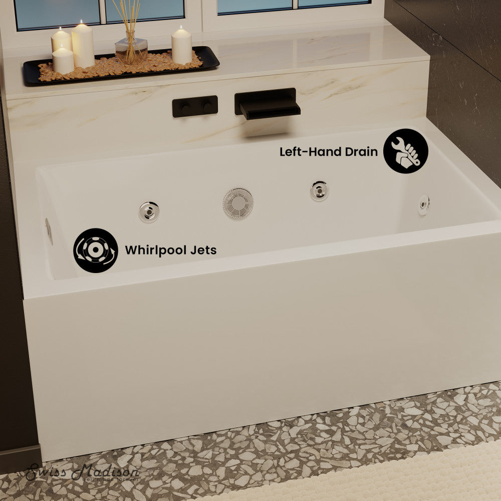 - Built-in apron: Bathtubs with built-in aprons streamline installation with a preinstalled front avoiding the need for tile.
