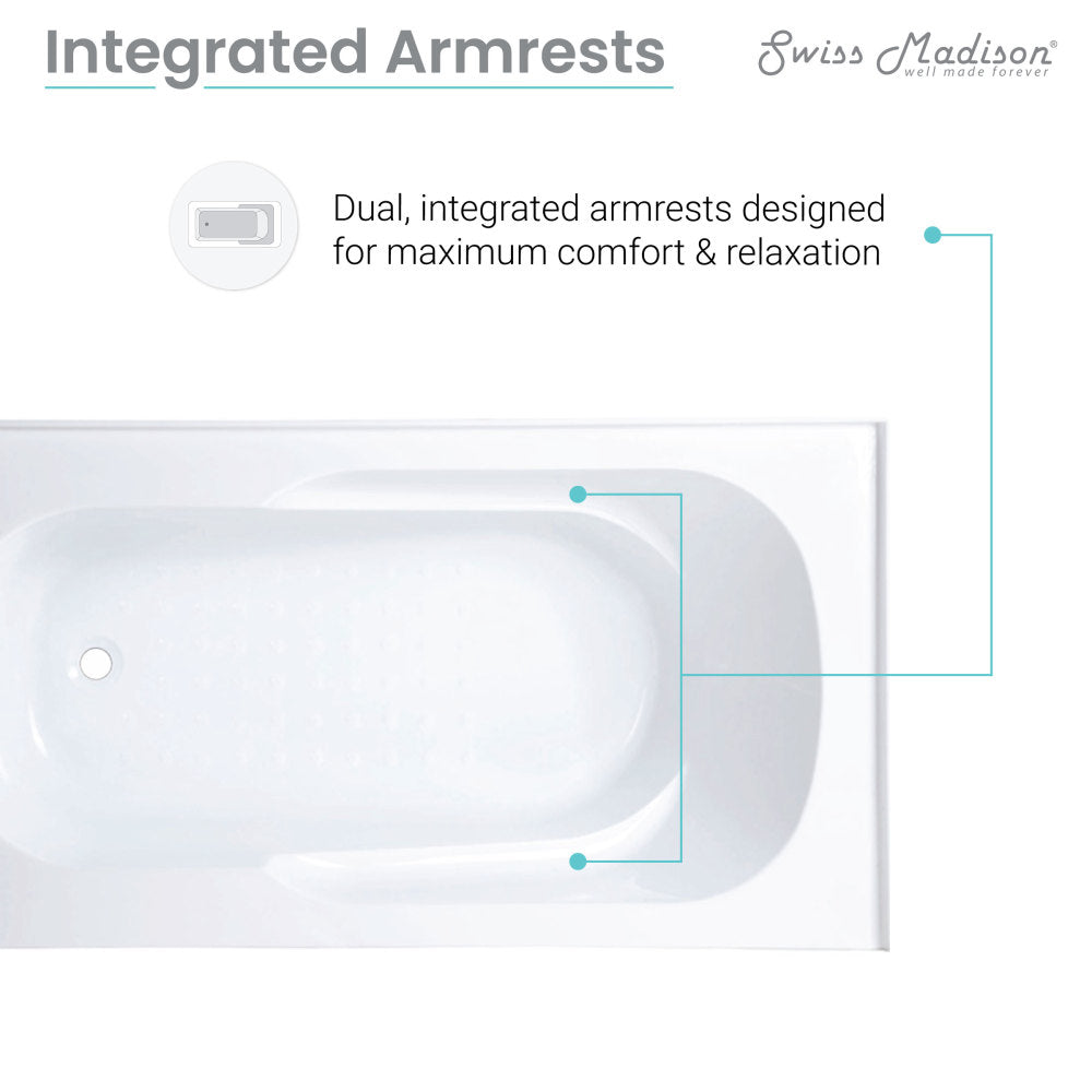 - Integrated armrest: Bathtubs featuring integrated armrests offer comfortable support, enhanced stability, and ease of use.