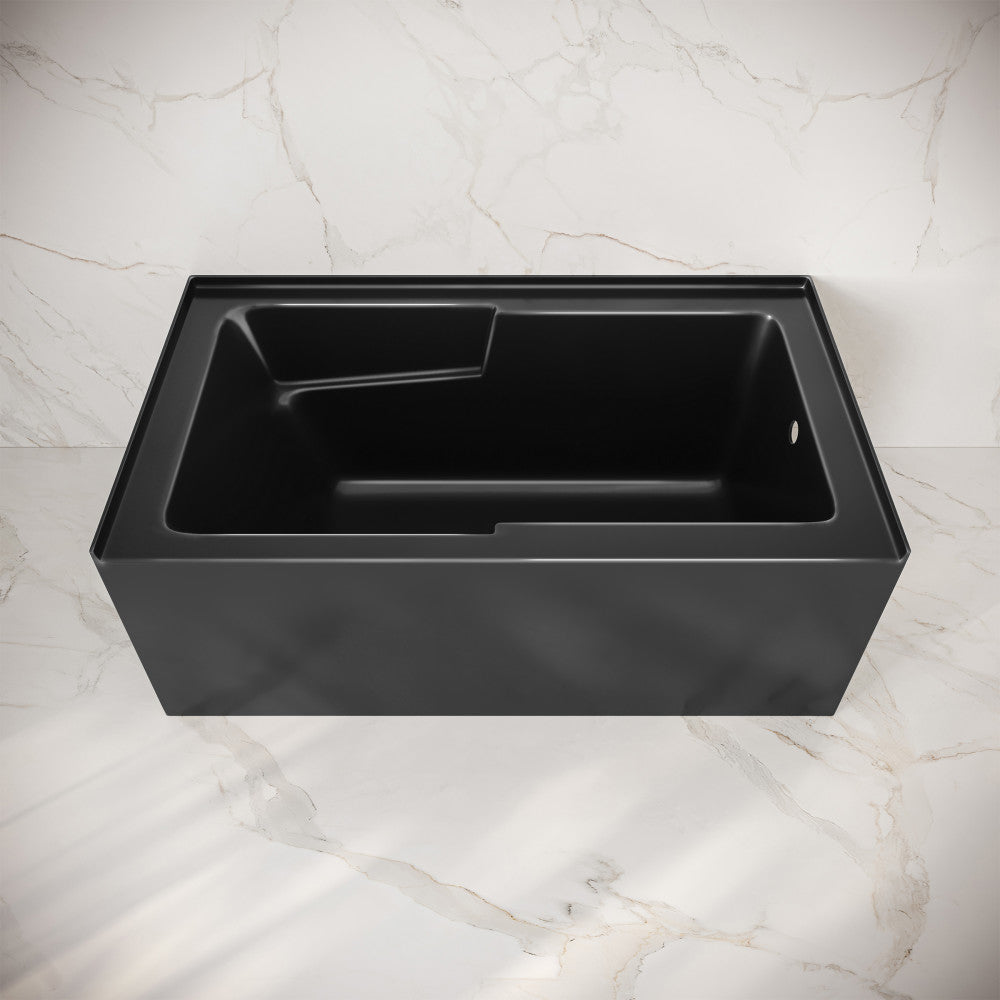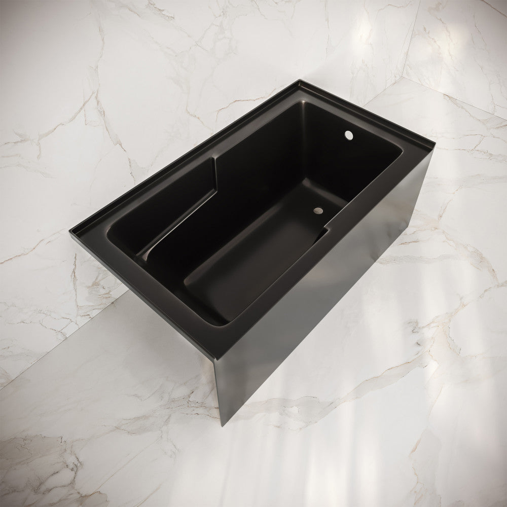 Voltaire 54 x 30 Skirted Right Drain Soaking Apron Bathtub in Glossy Black with Integrated Armrest