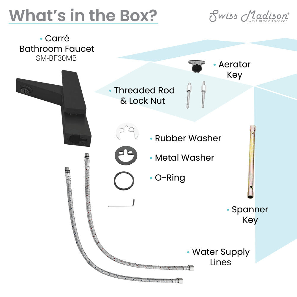 Embrace geometric balance with the Carre collection, where clean lines and modern design principles take center stage. Discover simplicity and sophistication in one with our single-handle faucets, offering smooth operation and contemporary design. Offered in black with a matte finish.