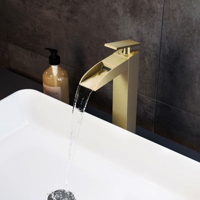 Concorde Single Hole, Single-Handle, High Arc Waterfall, Bathroom Faucet in Brushed Gold