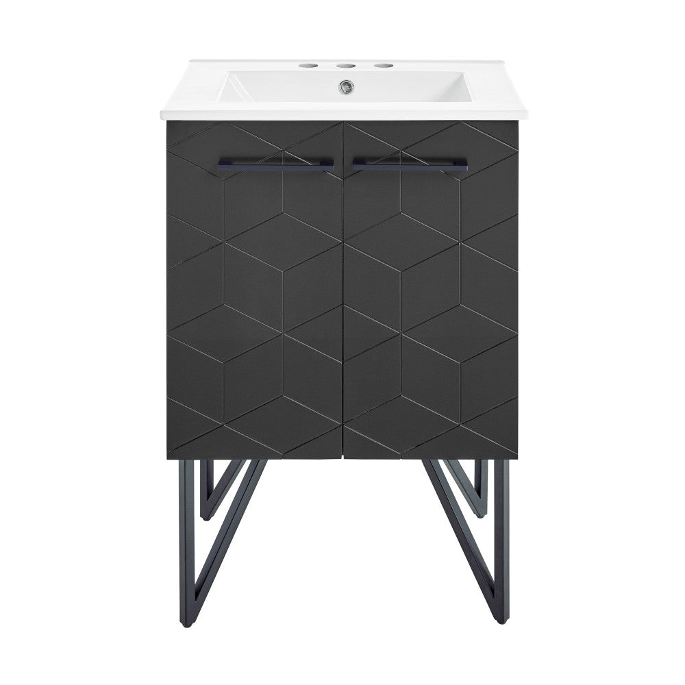 Annecy 24 in. Phantom Black Bathroom Vanity With White, 3-Hole Ceramic Sink Top