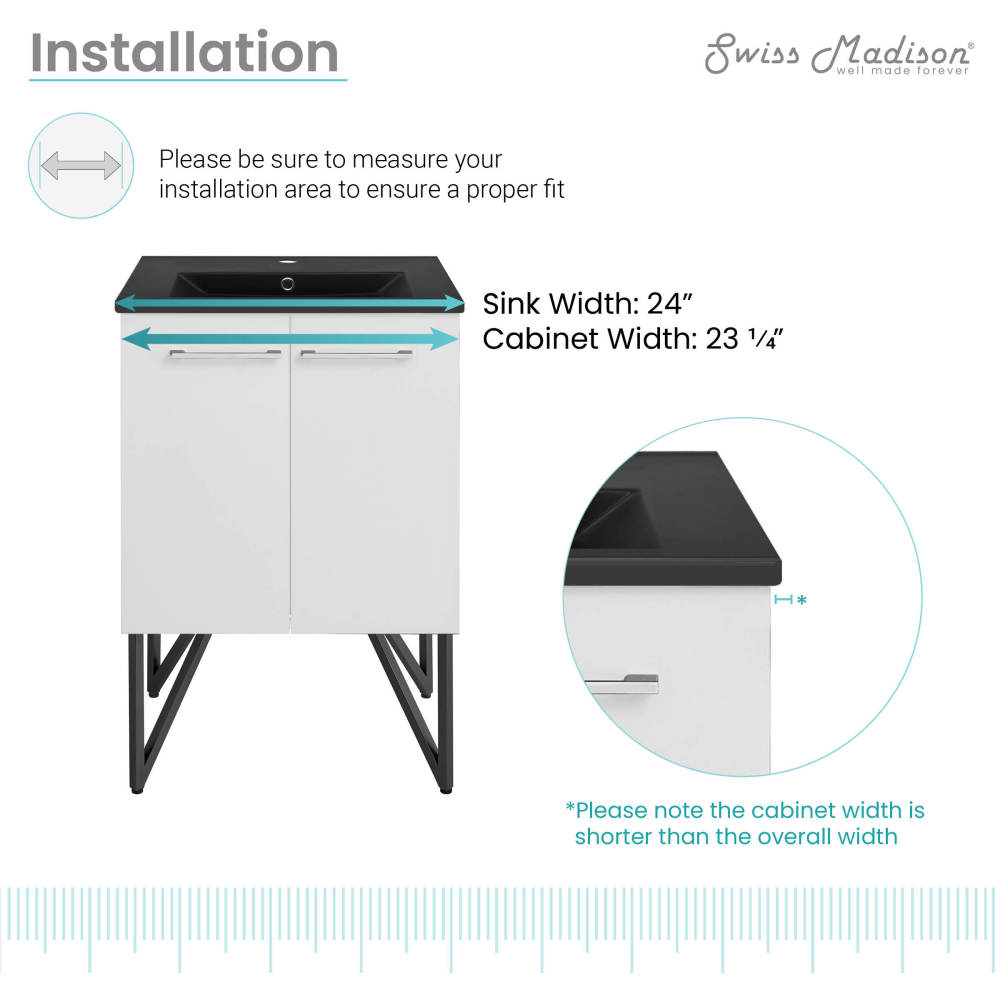 Annecy 24 in. White Bathroom Vanity With Black Ceramic Sink Top
