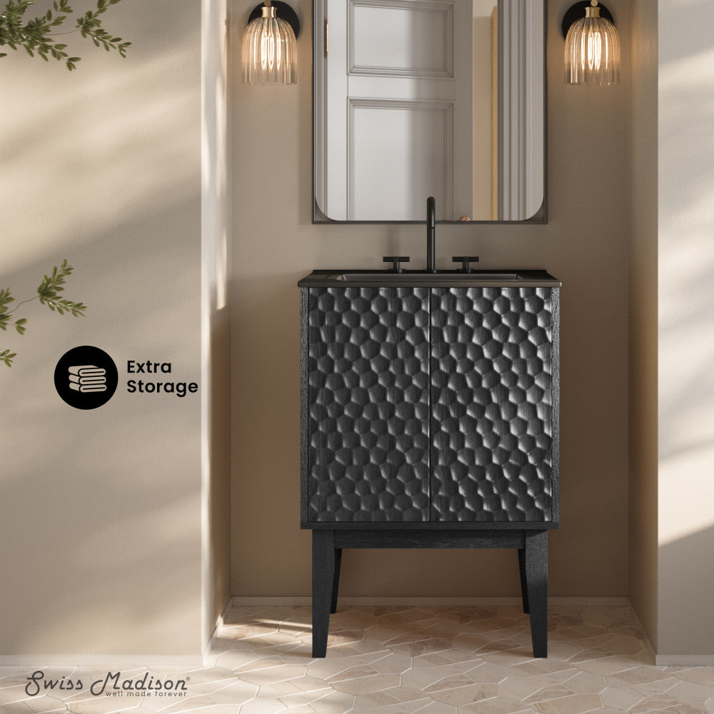 Elevate your living space with the distinctive allure of the Bosse Collection, where contemporary design seamlessly melds with innovative aesthetics, crafting an environment that effortlessly redefines modern living with a touch of individuality Transform your bathroom into a sanctuary of style and functionality with our exquisite bathroom vanities, meticulously crafted to reflect your unique taste. Black oak fixtures seamlessly blend rustic and contemporary elements, creating an eye catching and stylish contrast.