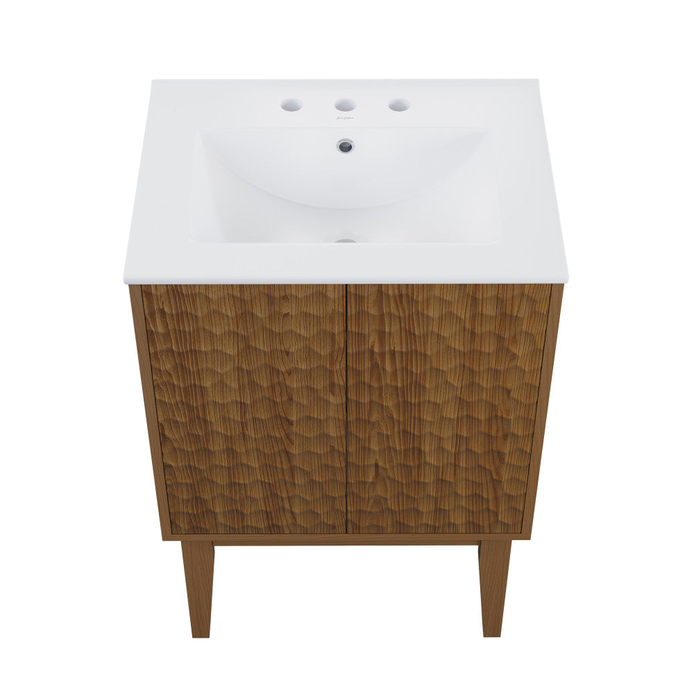 Bosse 24" Freestanding Bathroom Vanity in Brown Oak with 3-Hole Centerset Sink Top