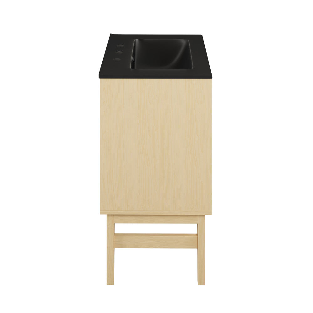 Bosse 24" Freestanding Bathroom Vanity in Natural Oak with Black 3-Hole Centerset Sink Top