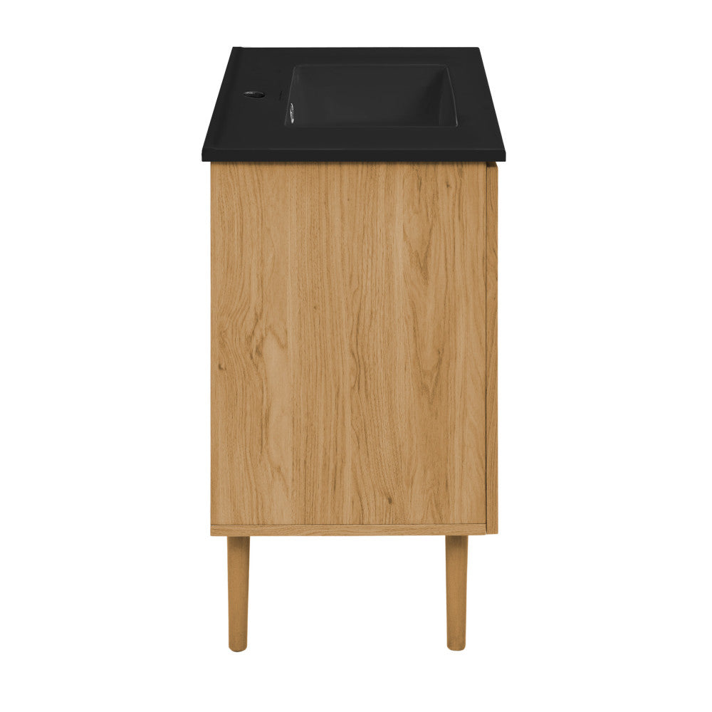 Celebrate the allure of the Bron collection, where timeless elegance meets modern flair. Transform your bathroom into a sanctuary of style and functionality with our exquisite bathroom vanities, meticulously crafted to reflect your unique taste. Offered in golden oak with a matte black sink top.