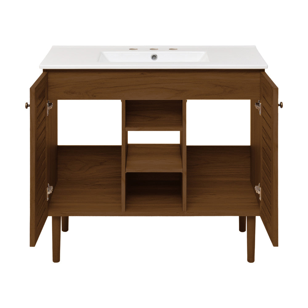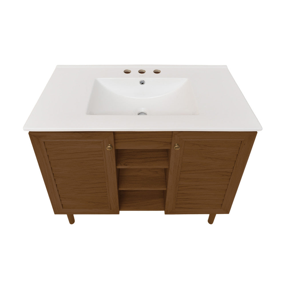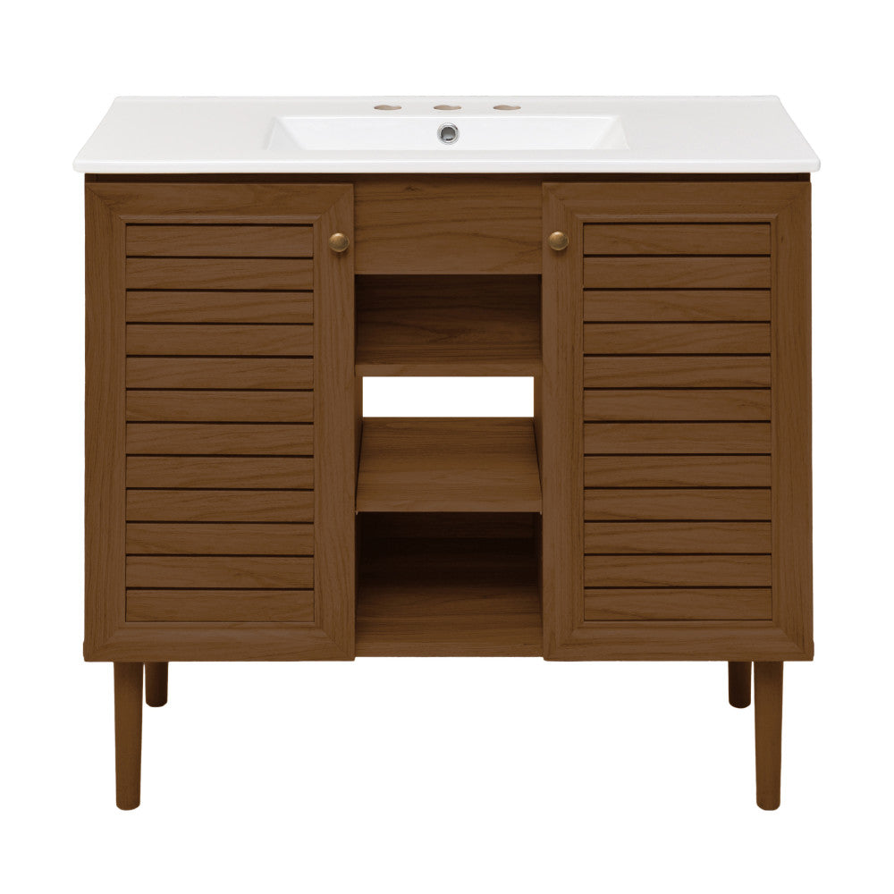 Bron 36" Freestanding Bathroom Vanity in Brown Oak with 3-Hole Widespread Sink Top