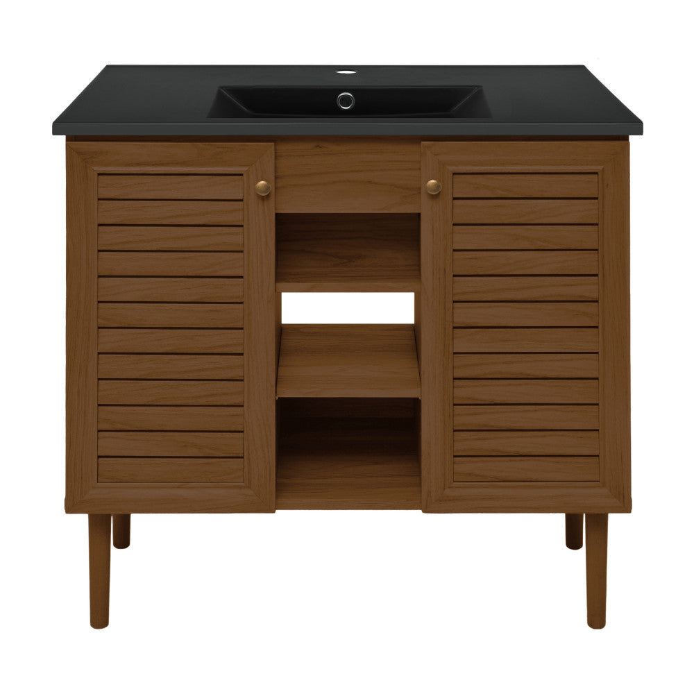 - 2 Doors 3 Open Shelves: Vanities offering two soft closing doors and 3 open shelves enhances your space with slam-free technology, additional storage space and creates an upscale appearance