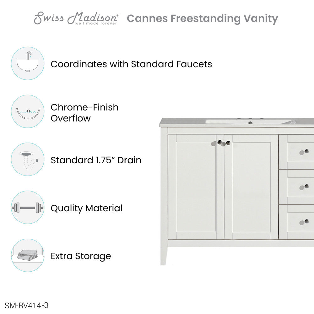 Cannes 48 in. White Bathroom Vanity With White, 3-Hole Ceramic Sink Top