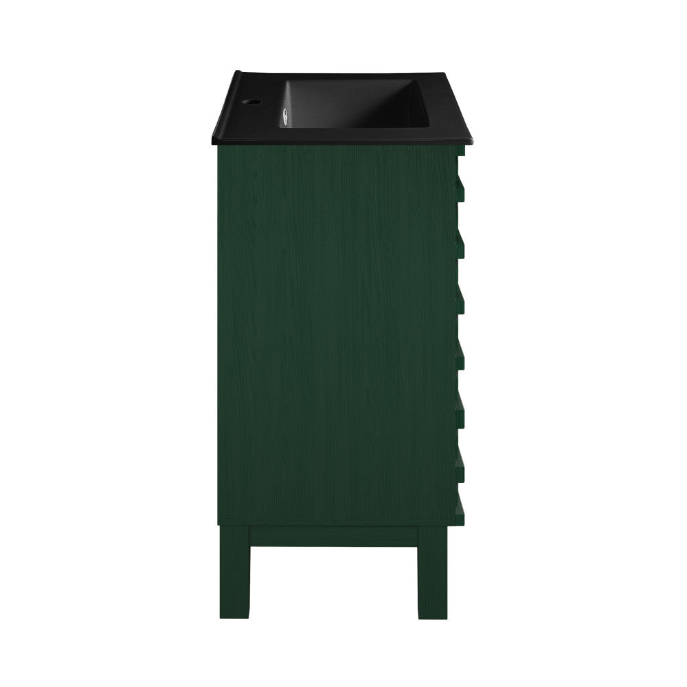 Immerse yourself in the gentle flow of design with the Cascade collection, where fluid lines and captivating forms create an atmosphere of tranquil beauty. Transform your bathroom into a sanctuary of style and functionality with our exquisite bathroom vanities, meticulously crafted to reflect your unique taste. Offered in green oak with a matte black sink top.