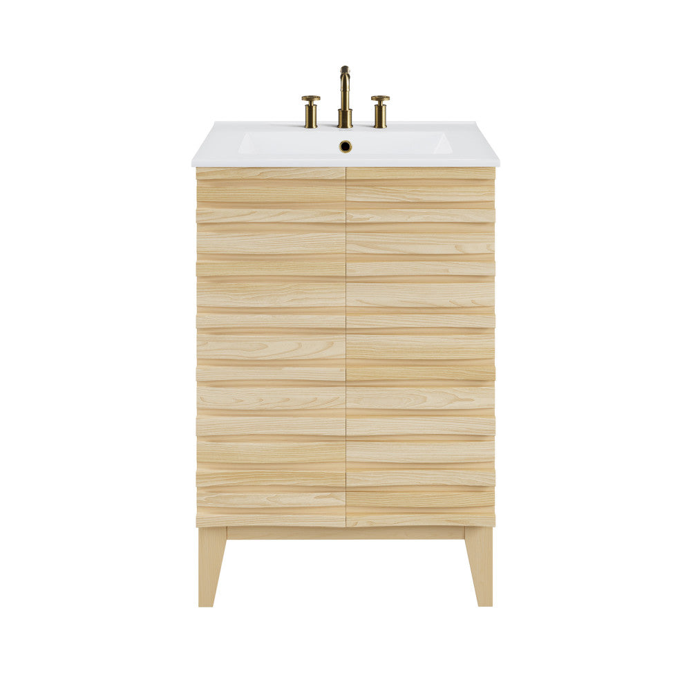 Cascade 24 in. Natural Oak Bathroom Vanity With White, 3-Hole Ceramic Sink Top