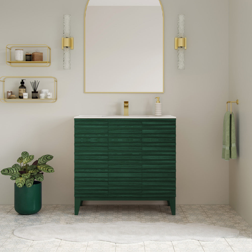 Cascade 36" Freestanding Bathroom Vanity in Green Oak with Sink Top