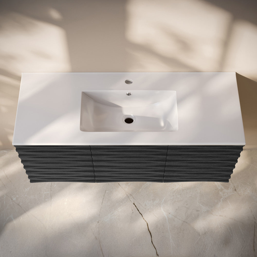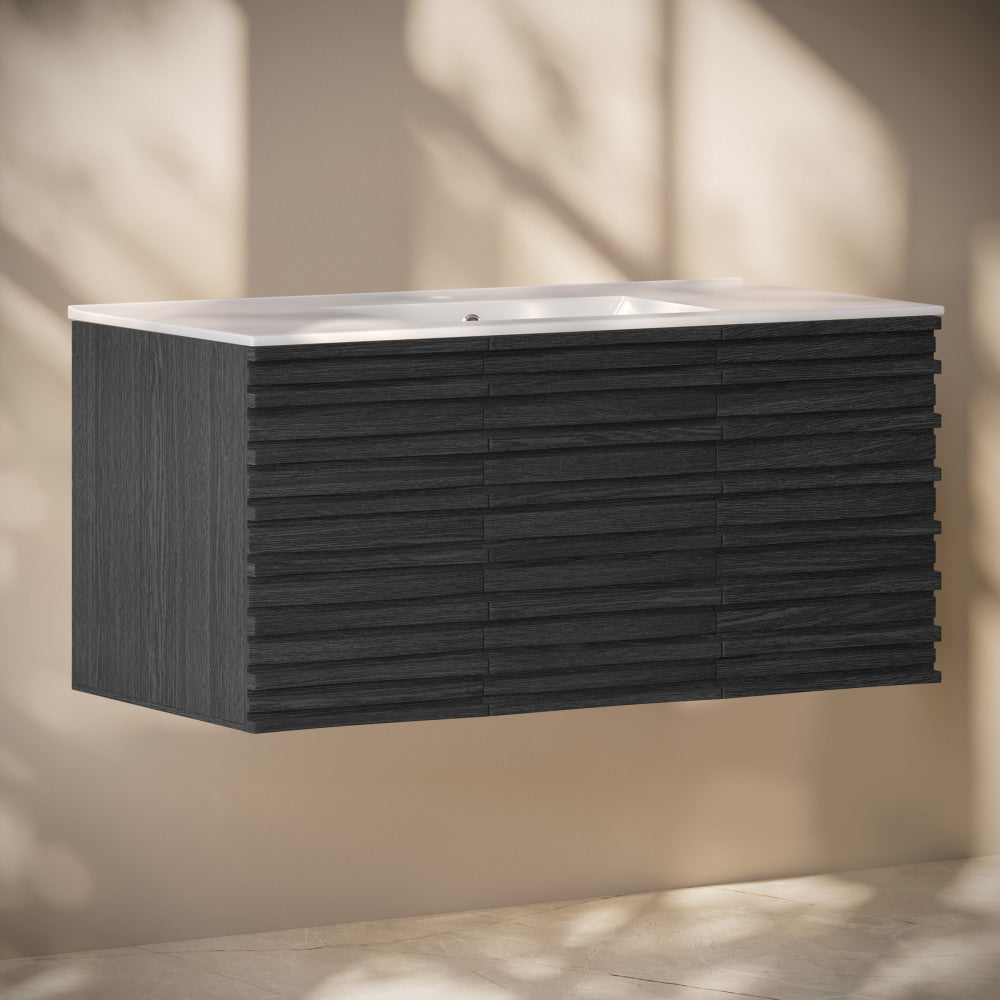 Immerse yourself in the gentle flow of design with the Cascade collection, where fluid lines and captivating forms create an atmosphere of tranquil beauty. Transform your bathroom into a sanctuary of style and functionality with our exquisite bathroom vanities, meticulously crafted to reflect your unique taste. Offered in black oak with a glossy white sink top.