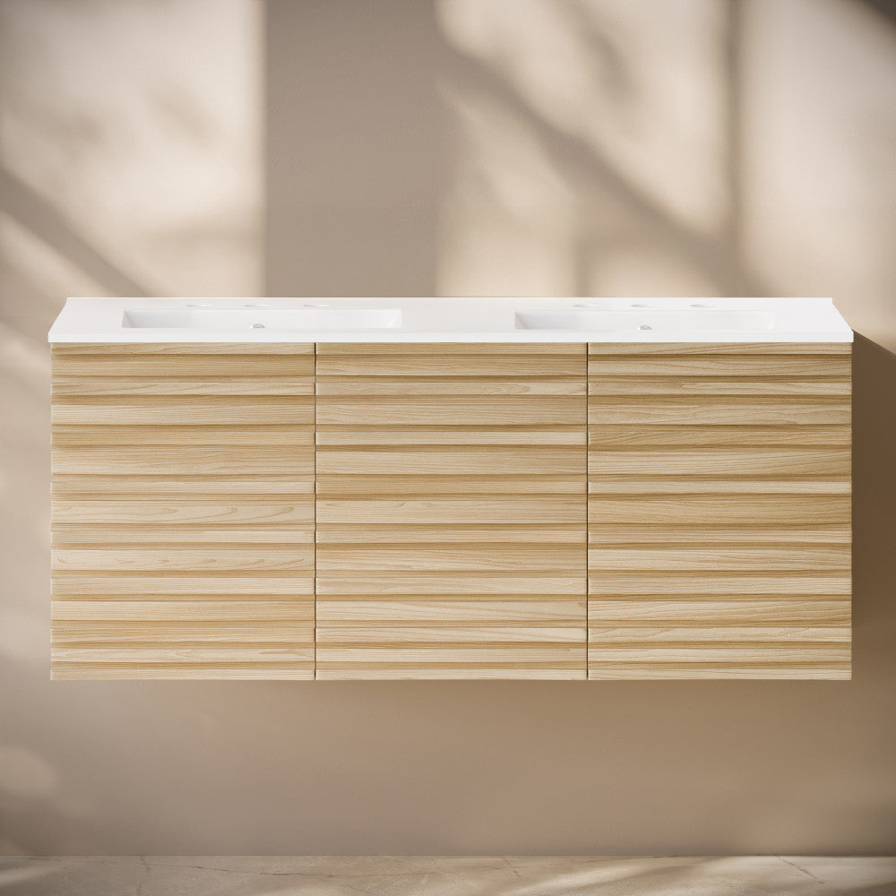 Immerse yourself in the gentle flow of design with the Cascade collection, where fluid lines and captivating forms create an atmosphere of tranquil beauty. Transform your bathroom into a sanctuary of style and functionality with our exquisite bathroom vanities, meticulously crafted to reflect your unique taste. Offered in natural oak with a glossy white sink top.