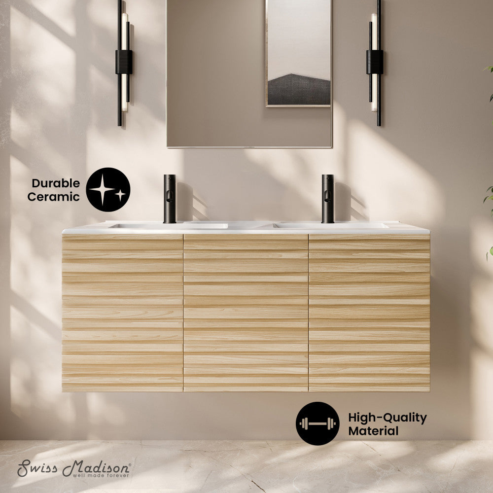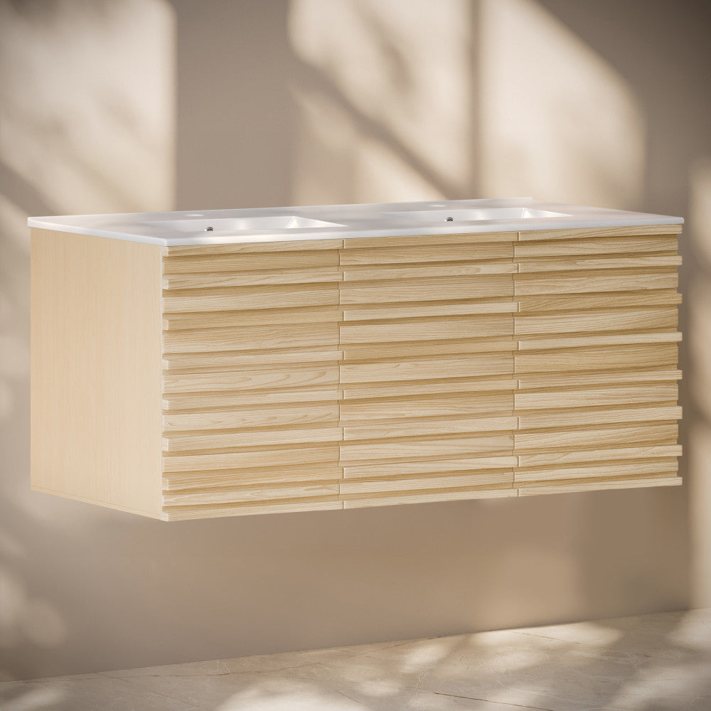 Immerse yourself in the gentle flow of design with the Cascade collection, where fluid lines and captivating forms create an atmosphere of tranquil beauty. Transform your bathroom into a sanctuary of style and functionality with our exquisite bathroom vanities, meticulously crafted to reflect your unique taste. Offered in natural oak with a glossy white sink top.