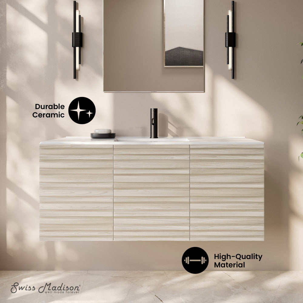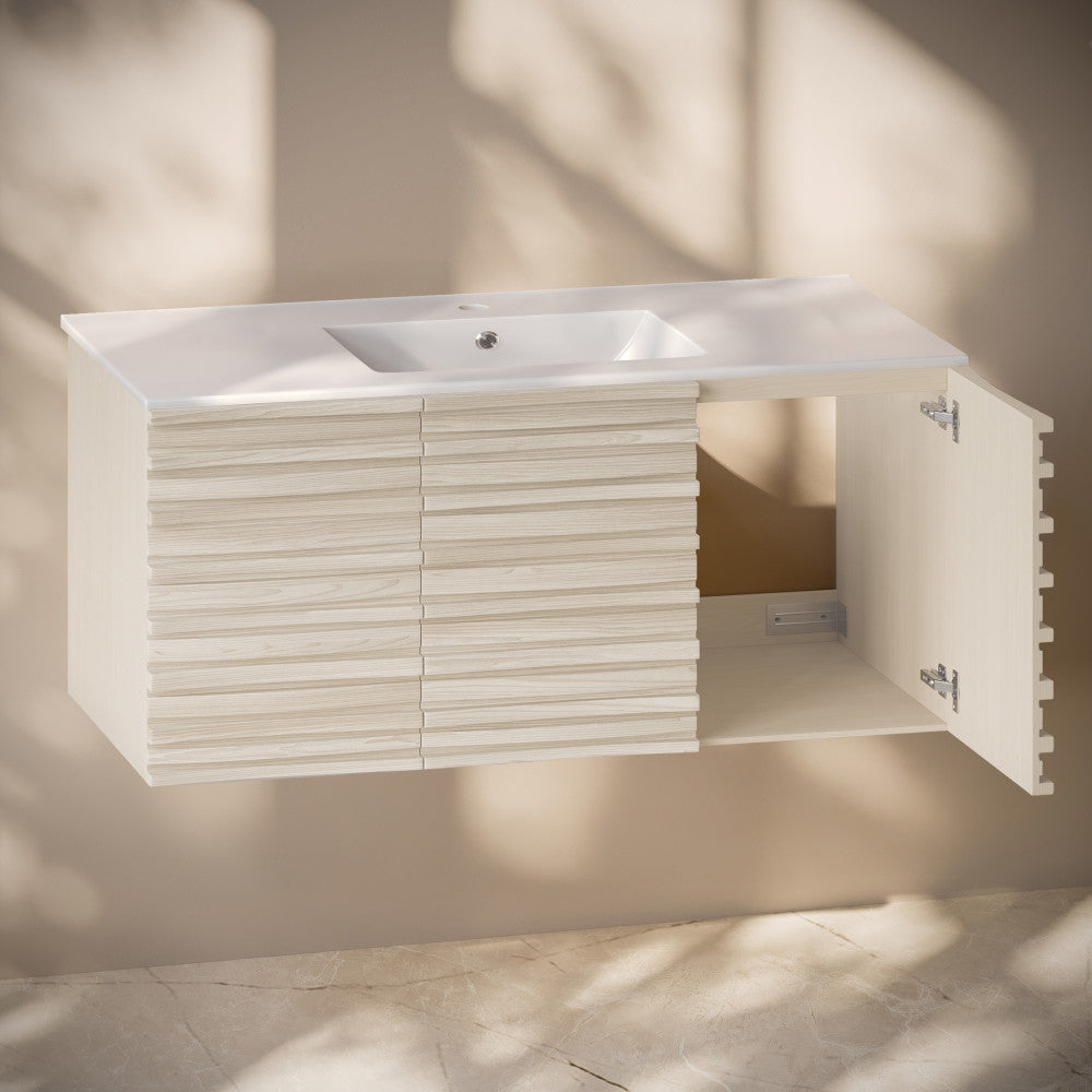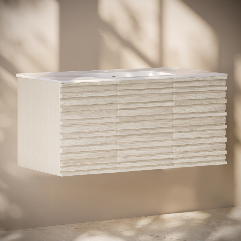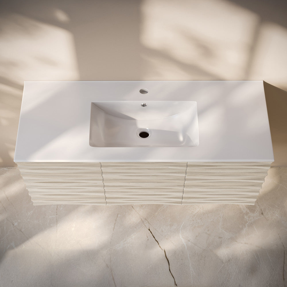 Immerse yourself in the gentle flow of design with the Cascade collection, where fluid lines and captivating forms create an atmosphere of tranquil beauty. Transform your bathroom into a sanctuary of style and functionality with our exquisite bathroom vanities, meticulously crafted to reflect your unique taste. Offered in white oak with a glossy white sink top.