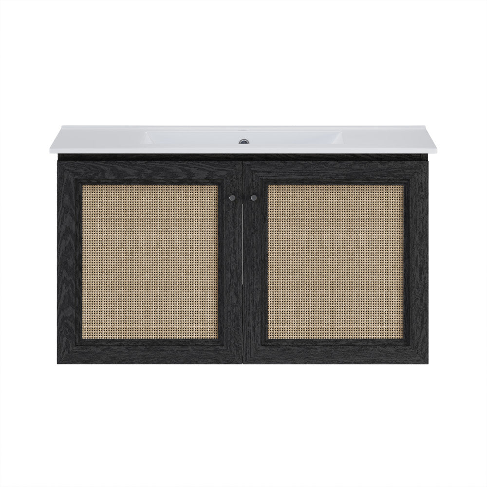 Classe 36" Wall-Mounted Bathroom Vanity in Black Oak with Single Faucet Hole Vanity Top