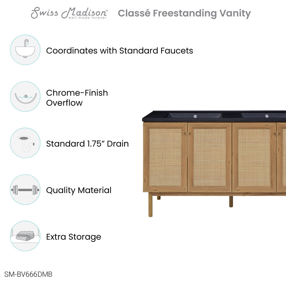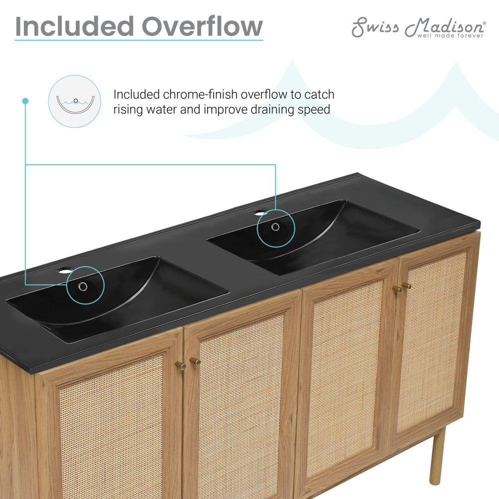 Classe 60" Freestanding Bathroom Vanity in Golden Oak with Black Double Basin Sink Top