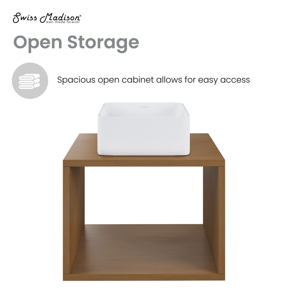 - Open Shelf: Vanity cabinets offering open space shelving that creates space saving elements with an increased area for storage while granting a modern stylized composition