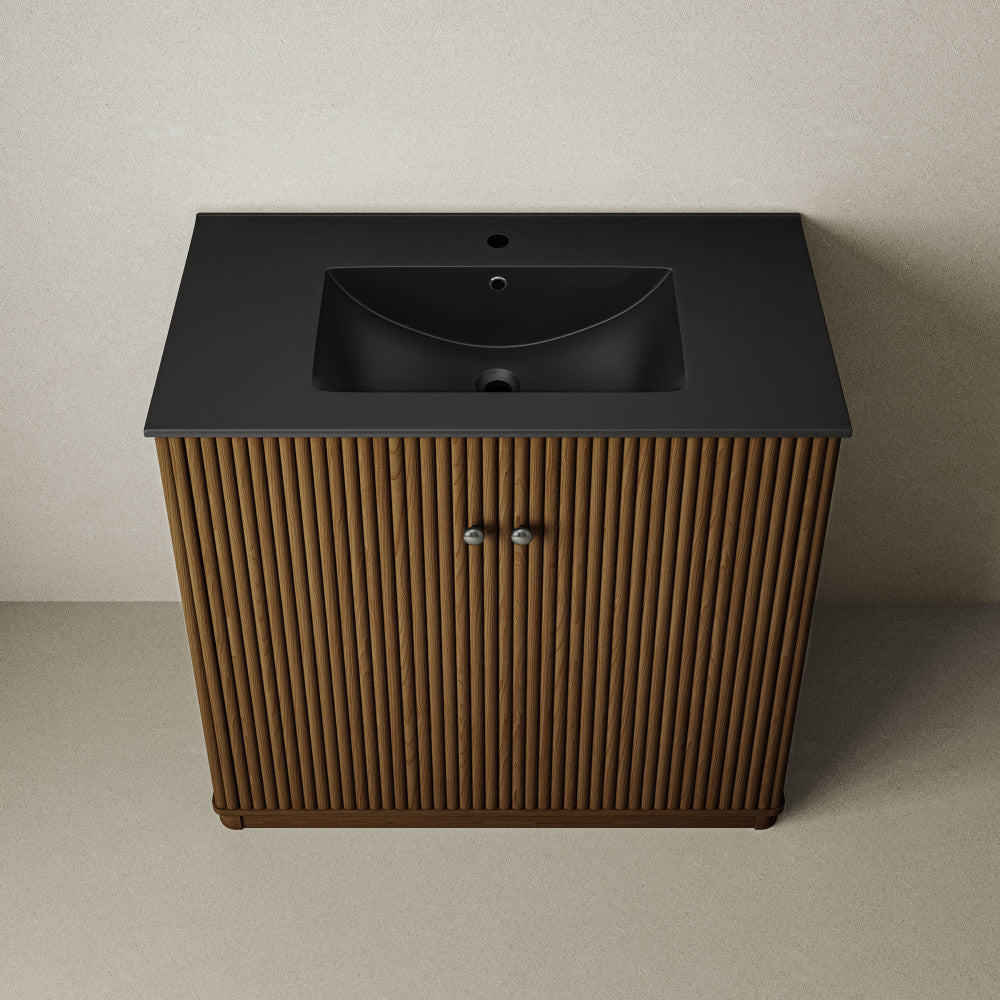 Lafayette 36" Freestanding Bathroom Vanity in Brown Oak with Matte Black Sink Top