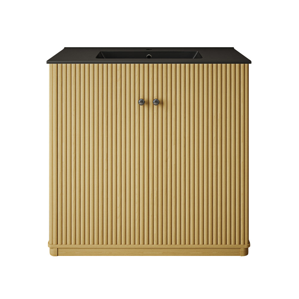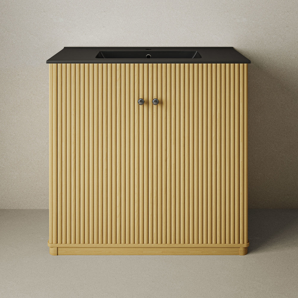 Lafayette 36" Freestanding Bathroom Vanity in Natural Oak with Matte Black Sink Top