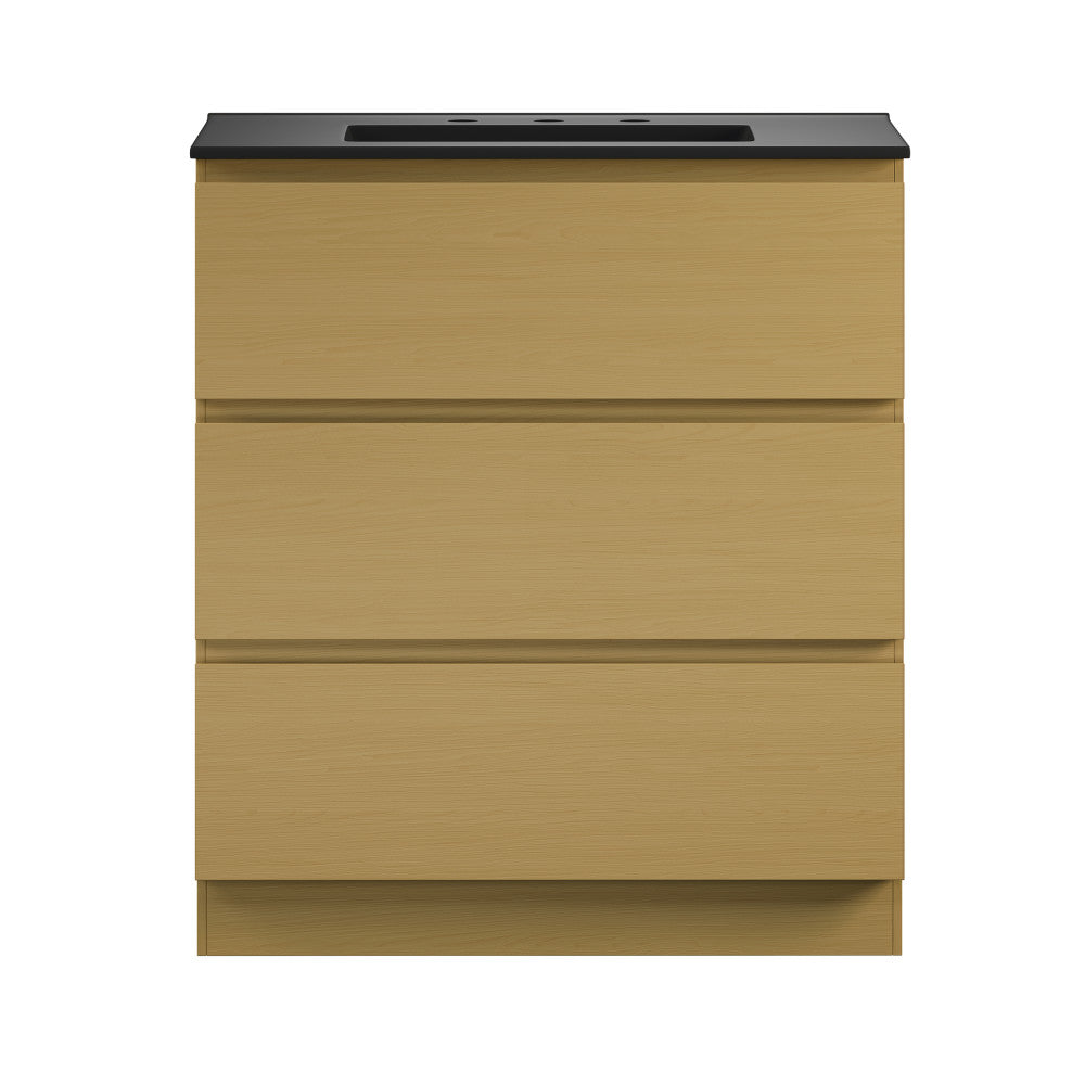 Liberte 30" Freestanding Bathroom Vanity in Natural Oak with Black 3-Hole Widespread Sink Top