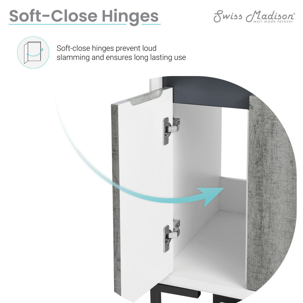 - 2 Doors 1 Drawer 1 Open Shelf: Vanities offering two soft closing doors, one drawer and one open shelf enhances your space with slam-free technology, additional storage space and creates an upscale appearance