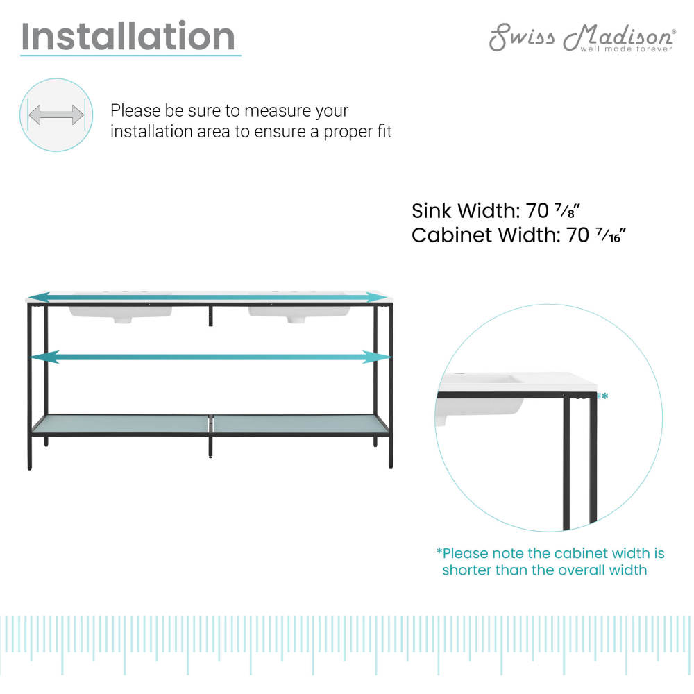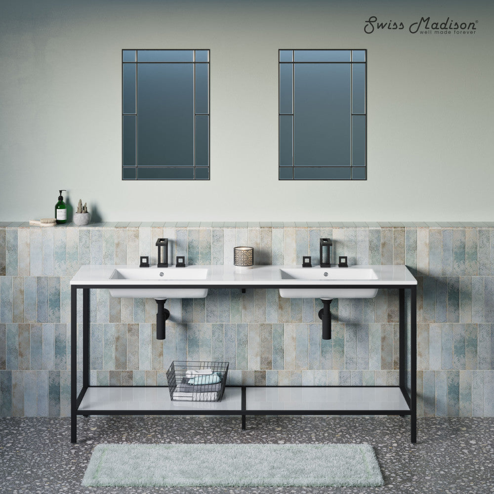 Pierre 72 Double, Freestanding, Open Shelf, Matte Black Metal Frame Bathroom Vanity