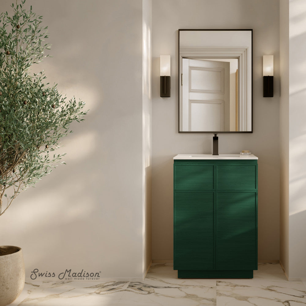 Capture the essence of coastal sophistication with the St. Tropez collection, evoking the breezy allure of Mediterranean living. Transform your bathroom into a sanctuary of style and functionality with our exquisite bathroom vanities, meticulously crafted to reflect your unique taste. Offered in green oak with a glossy white sink top.