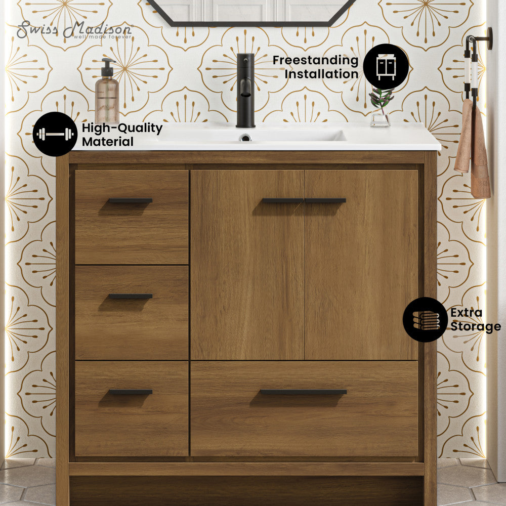- Freestanding Installation: Freestanding vanities offer flexible installtion to best suit your bathroom layout