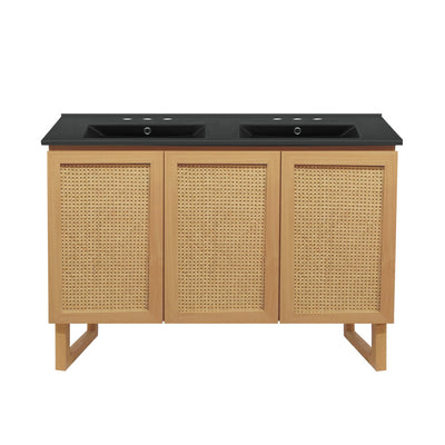 Arles 48 in. Natural Oak, Double Basin Bathroom Vanity With Black, 3-Hole Ceramic Sink Top