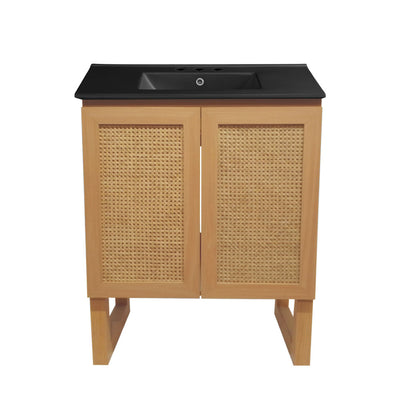 Arles 30 in. Natural Oak Bathroom Vanity With Black, 3-Hole Ceramic Sink Top
