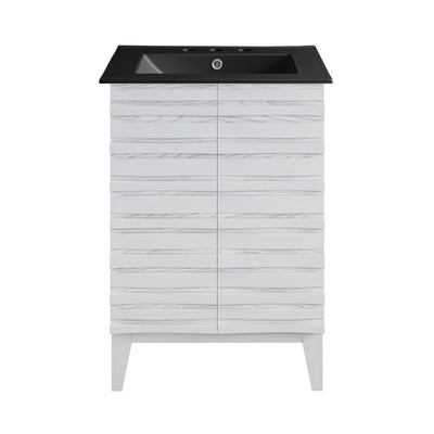 Cascade 24 in. White Oak Bathroom Vanity With Black, 3-Hole Ceramic Sink Top
