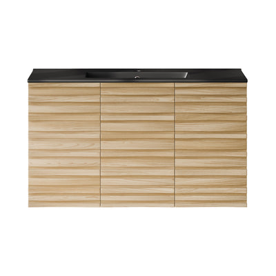 Cascade 48 in. Natural Oak Bathroom Vanity With Black Ceramic Sink Top