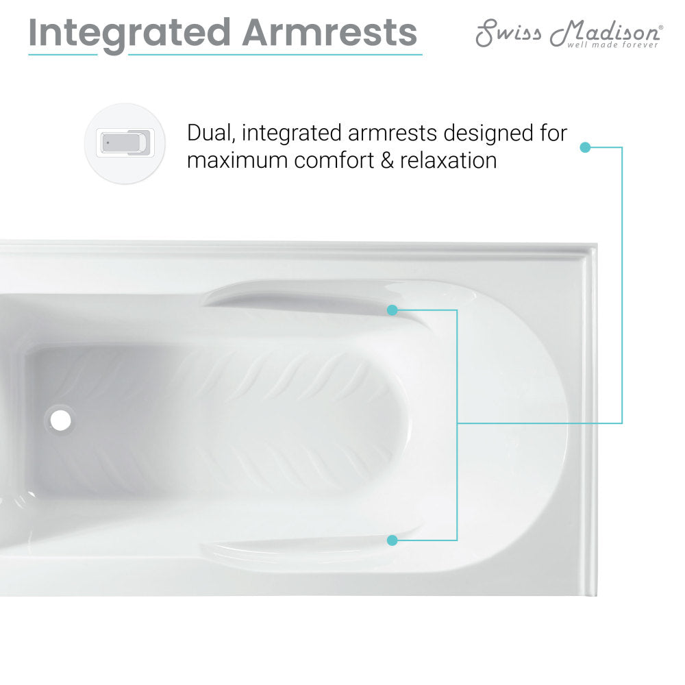 - Integrated armrest: Bathtubs featuring integrated armrests offer comfortable support, enhanced stability, and ease of use.